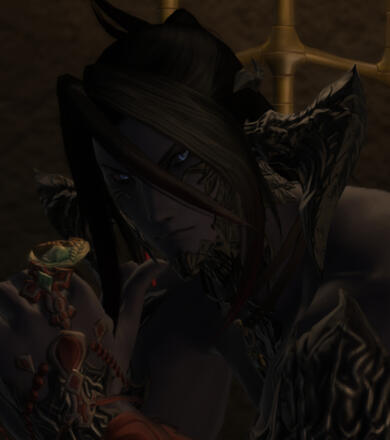 Alignment: True NeutralUpon first meeting this particular blackscale, one might easily mistake him for being shy, retreating or even passive. More inclined to keep his counsel and his company to a wall or something less disposed to provoke his ire, it's quite easy to say that this Xaela does not often go out of his way to go out and meet people.When the towering Xaela finally lets his guard down, however, one might find him a respectable sparring partner, a loyal friend and ally, and the one who you'll trust to get you home when you've indulged in a bit too much alcohol. He's amicable and has unending patience to rival kings.In the company of those he's comfortable with, though, he's often witty and a tad bit bratty, as well as laid-back to a fault. His flirtatious nature borders on bold if one brings it out and can even toe the line on perverse and sinful if he's so inclined. He knows he's got a face to tempt demons and a body to match, and he's not opposed to using it if the occasion arises.Raised in Eorzea (and if one observes his dress and manner acutely enough, one can easily discern where!), he has vague conceptions about what tribal life /should/ be like, though it's easy to say that he does not have any idea of what an 'ideal' Xaela should act and behave like. Regardless, his personality is his own and should be treated as such.Privately, however, he is rumored to have appetites that prove to be insatible--though what kind of appetites that may be remain to be seen.